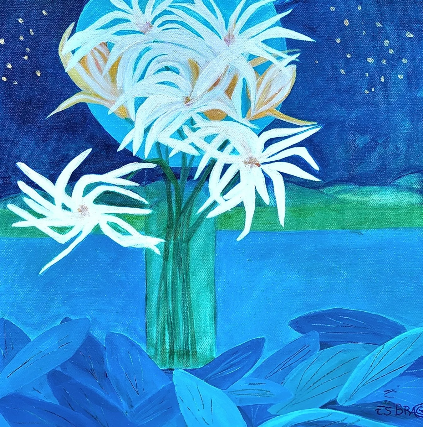 BRUGMANSIA NIGHT I. Acrylic, 36x36 $1500